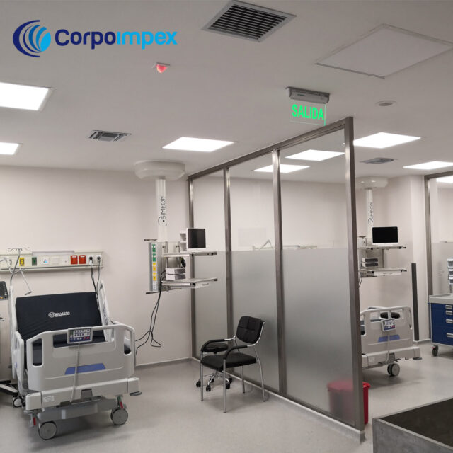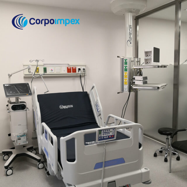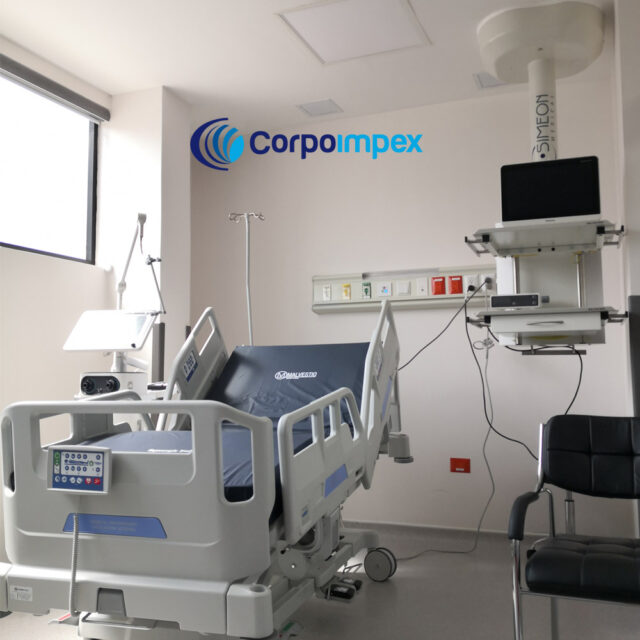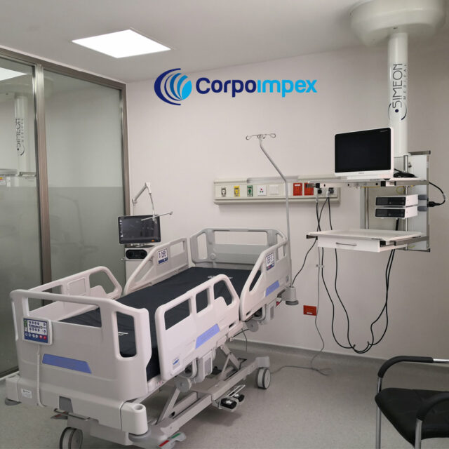 En su área de cuidados Intensivos se ha implementado nuestras modernas torres de gases anestésicos Simcarry 50 con salidas de aire, Oxigeno y Vacio de nuestra representada Alemana Simeon Medical, así como también nuestras muy reconocidas y versátiles camas Italianas Malvestio Delta 4 en una configuración ideal para UCI.